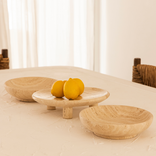 صُنع هذا الوعاء الفريد من نوعه من رخام الترافرتين من الدرجة الأولى، وهو أنيق ومتعدد الاستخدامات. تدعم أعمدته الثلاثة التصميم المفتوح على مصراعيه، مما يخلق هيكلًا مستقرًا يلفت الأنظار. يضفي لمسة من الفخامة على أي مناسبة ويمتزج بسلاسة مع أي نمط ديكور.